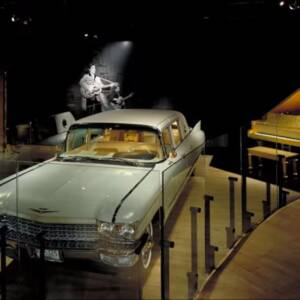 Artifacts include Elvis Presley’s 1960 “Solid Gold” Cadillac limousine and Maybelle Carter’s Gibson L-5 guitar.